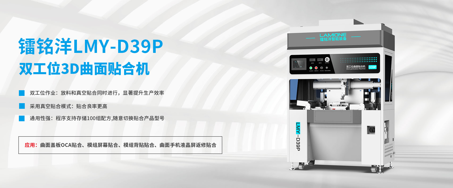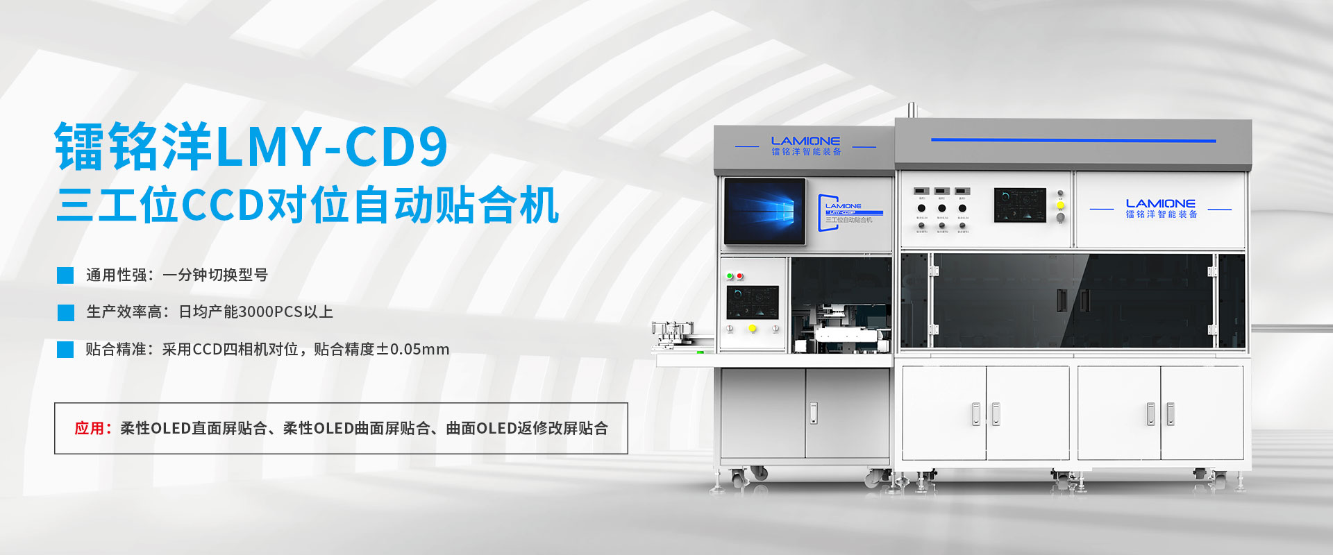 鐳銘洋智能裝備是一家專業(yè)的OLED柔性面板貼合設(shè)備制造工廠,目前在廣深地區(qū)的柔性屏生產(chǎn)行業(yè)設(shè)備覆蓋率超過80%,占據(jù)重要地市場(chǎng)地位,擁有強(qiáng)大的品牌影響力。